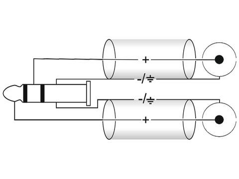 Кабель-адаптер c разъёмами 6,3 Jack стерео и 2xRCA.