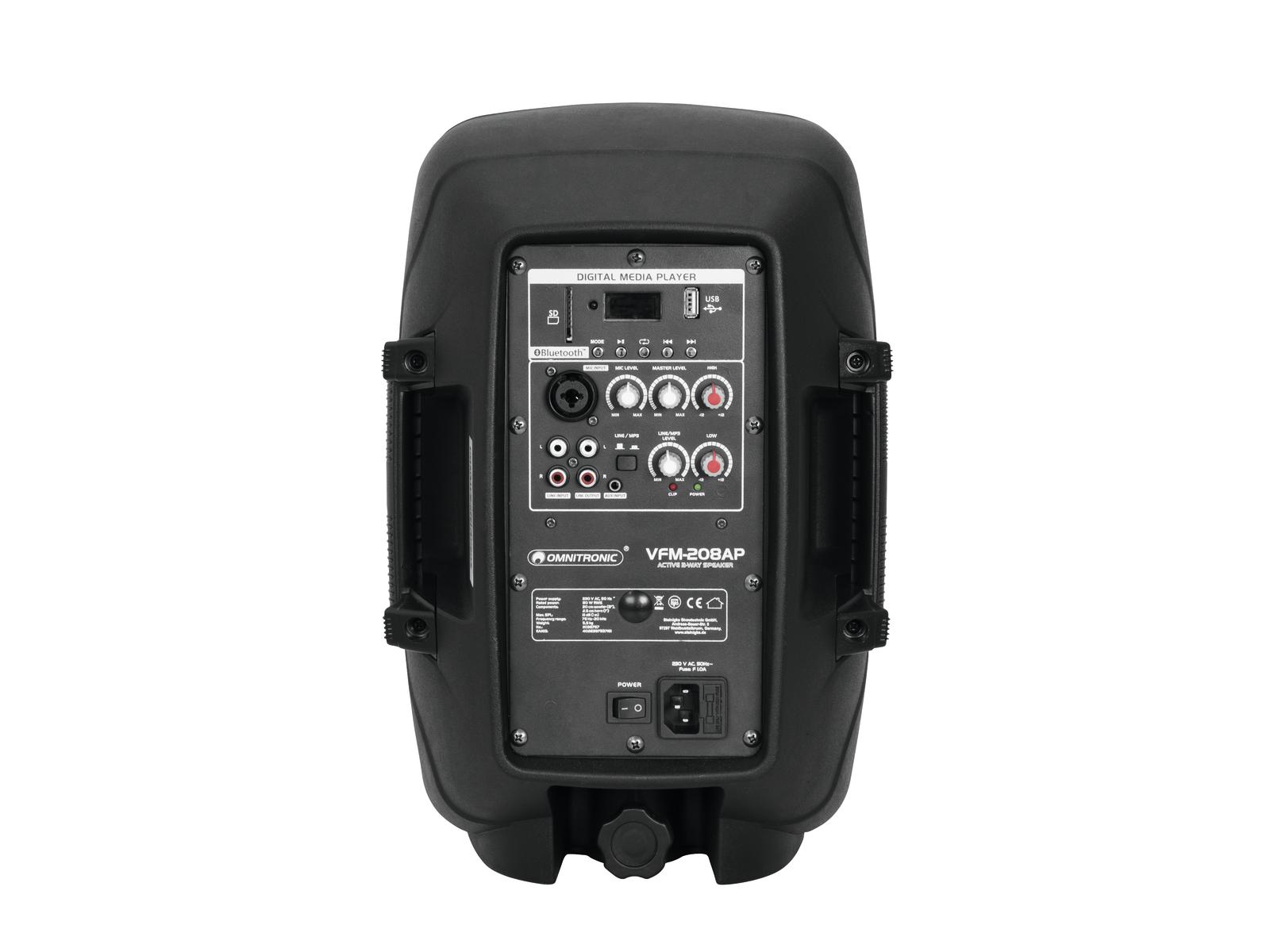 2-полосная колонка с bass-reflex системой. Схема класса A / B: оптимальный звук и мощность при небольшом весе и компактных размерах. Низкочастотный динамик 20 см и 2,5-см твитер. 1 микрофонный вход с отдельными регуляторами уровня. Линейный вход, RCA. 3,5 мм AUX вход. Мастер контроль с двухсторонней регулировкой тембра, клипом и индикатором питания. Линейный выход для подключения других активных акустических систем. Прочный пластиковый корпус с защитной решеткой и ручками. Фланец для установки на стойку. Может использоваться как напольный монитор, стоя, на стойке для АС или настенном держателе. Для мобильных приложений, живой музыки (Live) и DJ. Главный эквалайзер: 1 х 2 полосы управления тоном.2-полосная колонка с bass-reflex системой. MP3-плеер с Bluetooth-приемником, синим ЖК-дисплеем и ИК-пультом дистанционного управления. Слот для SD-карты и USB-вход. Возможно воспроизведение музыки по беспроводной сети с мобильных устройств (например, смартфона, планшета) через Bluetooth. Схема класса A / B: оптимальный звук и мощность при небольшом весе и компактных размерах. Низкочастотный динамик 20 см и 2,5-см твитер. 1 микрофонный вход с отдельными регуляторами уровня. Линейный вход, RCA. 3,5 мм AUX вход. Мастер контроль с двухсторонней регулировкой тембра, клипом и индикатором питания. Линейный выход для подключения других активных акустических систем. Стабильный пластиковый корпус с защитной решеткой и ручками. Фланец для установки на стойку. Может использоваться как напольный монитор, стоя, на стойке для АС или настенном держателе. Для мобильных приложений, живой музыки (Live) и DJ. Главный эквалайзер: 1 х 2 полосы управления тоном