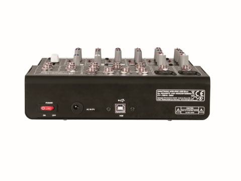 Встроенный USB аудио интерфейс позволяет запись и воспроизведение цифровых аудио файлов с компьютера (ПК и Mac). Полный дуплекс USB порт: возможно одновременная запись и воспроизведение. 2 входных моно канала с регулировкой усиления, 3-полосный эквалайзер, Low Cut и панорамное управления. 4 входных стерео канала с 3-полосным эквалайзером, переключателем уровня и балансировкой. Регулируемый стерео выход aux. Вход и выход Tape. Отдельные основной микшируюший выход и выходной блок. Выход на наушники. Фантомное питание +48 В может переключаться по центру. Точный 4-разрядный стереофонический индикатор уровня. Работа через поставляемый блок питания. Прочный компактный металлический корпус.
