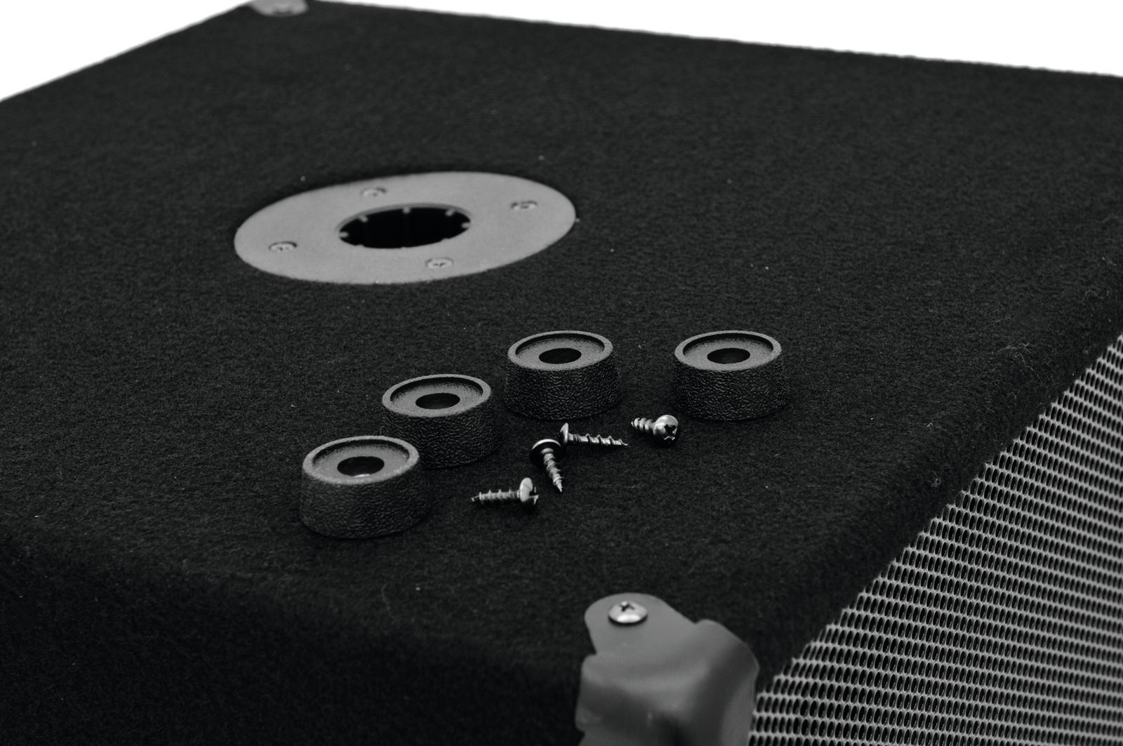 Поддержка низких частот для всех широкополосных звуковых колонок. Мощный, сухой бас благодаря объемному корпусу и бас-рефлекс трубами. Пассивный, отключаемый кроссовер. Очень высокая прочность. Удобные бар-ручки для переноски. Устойчивый к царапинам, покрытие - черный войлок. Усиленная защитная решетка для идеальной защиты. Стабильные защитные стальные уголки. С фланцем для верхней установки широкополосных звуковых колонок. Идеально подходит для мобильных дискотек или для стационарной установки на дискотеках и т.д.