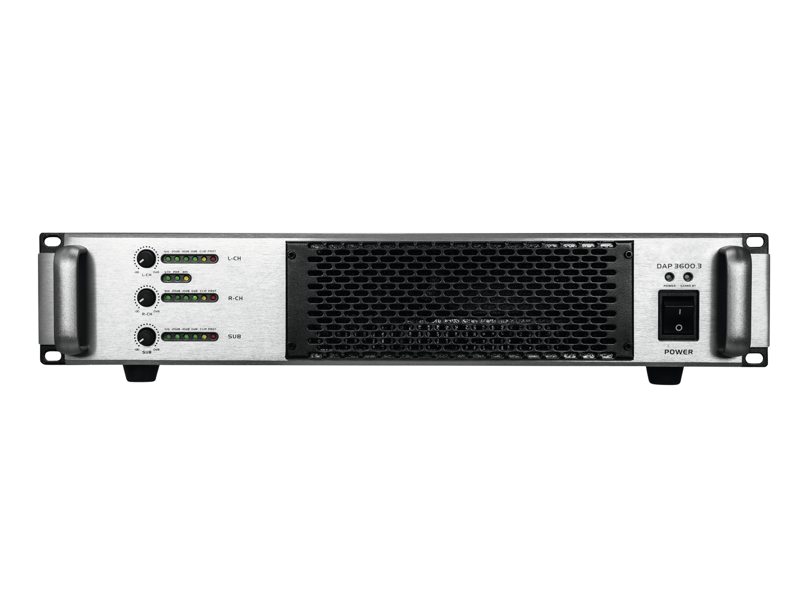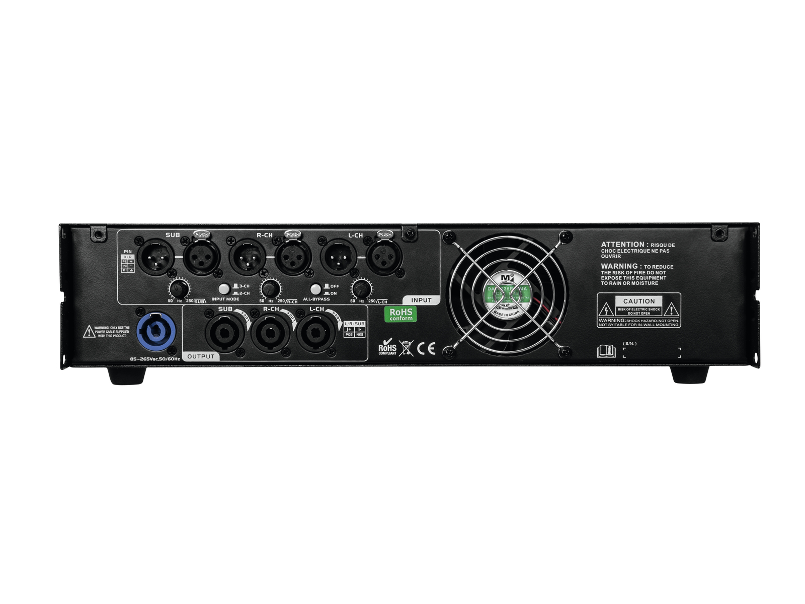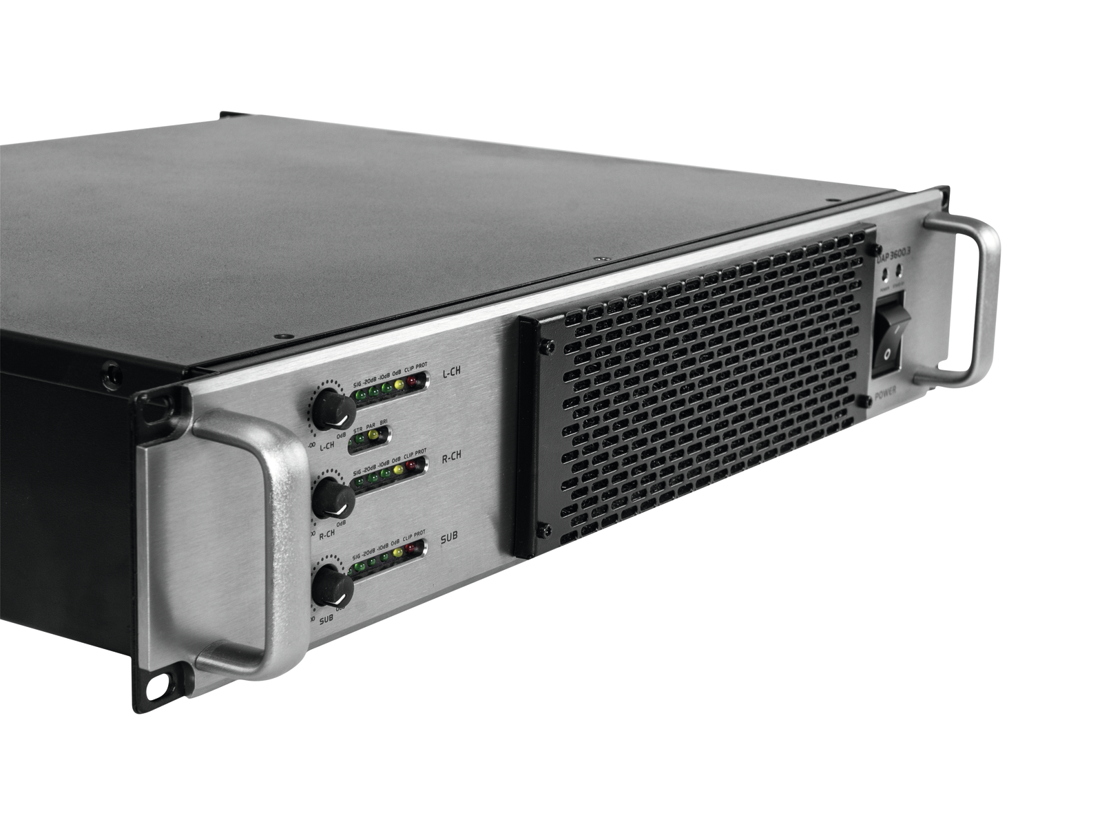 3-канальный усилитель мощности с цепью класса D и импульсным источником питания. Регулируемая частота кроссовера для сателлитов и сабвуфера. 2.1 режим работы или 3-канальный режим по выбору. 3 уровня контроля. Светодиодный индикатор VU и светодиоды для активированной защитной цепи (защита) и перегрузки (зажим) на канал. Электронно сбалансированные входы через монтажные гнезда XLR, с проходными выходами XLR. Выходы динамика через блокируемые Speaker-разъемы. Прочное стальное шасси с алюминиевой лицевой панелью. Установка в стойку с 2 U.